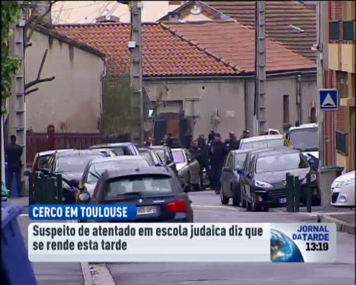 Continua cercado pela polícia o suspeito do atentado de segunda-feira na escola judaica de Toulouse, em França. Tem 24 anos, nacionalidade francesa, mas origem argelina, e diz pertencer à Al Qaeda.
