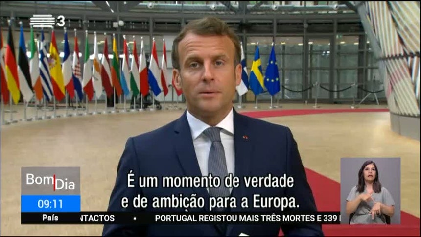 À chegada à sede do Conselho, para aquela que é a primeira cimeira de líderes presencial desde a crise da pandemia da covid-19, Emmanuel Macron reiterou que esta "crise inédita, no plano sanitário mas também a nível socioeconómico, exige muito mais solidariedade e ambição", advertindo que, para muitos, "é o projeto europeu que está em jogo".