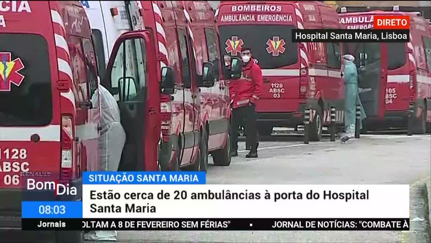8h27 - Ambulâncias à porta do Hospital de Santa Maria