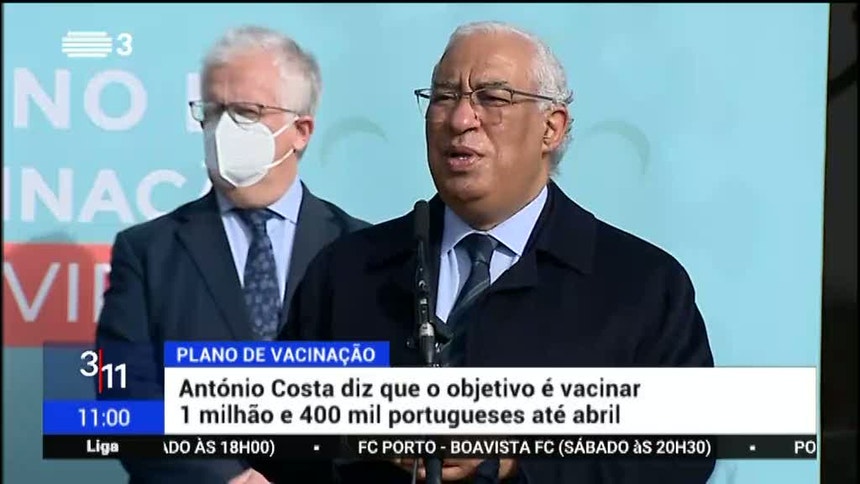 O primeiro-ministro, António Costa, fixou hoje como objetivo vacinar 1,4 milhões de portugueses até "ao princípio de" abril, depois de já terem sido administradas mais de "meio milhão de vacinas".