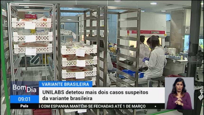 Foram detetados mais dois casos suspeitos da variante do Coronavírus que surgiu no Brasil. A informação foi avançada pelo diretor-geral da Unilabs. Na RTP, Luís Menezes defendeu que a realização de 70 mil testes PCR por dia são suficientes para de poder desconfinar em segurança.