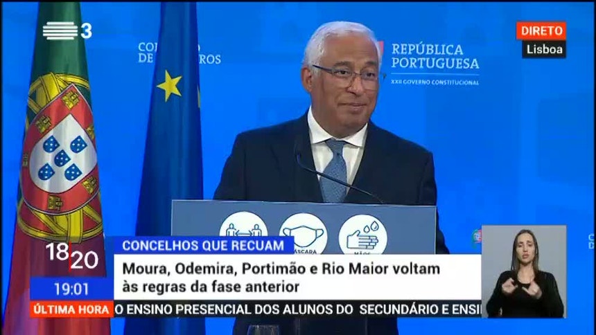 19h27 - O primeiro-ministro, António Costa, acaba de anunciar as regras para a terceira fase de desconfinamento, que irão vigorar a partir de segunda-feira, dia 19, em acordo com as decisões do Conselho de Ministros realizados esta quinta-feira.