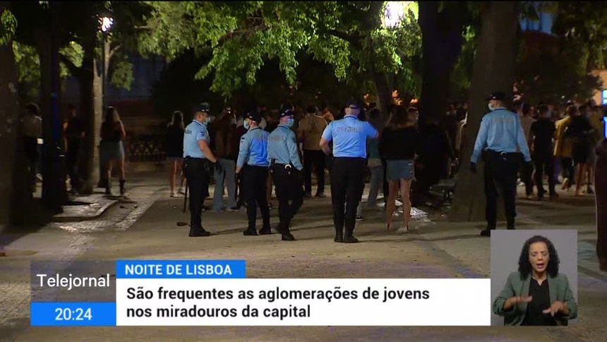 Multiplicam-se os ajuntamentos nos principais espaços de convívio de Lisboa. No Miradouro de São Pedro de Alcântara, os jovens só dispersaram com a intervenção da PSP.