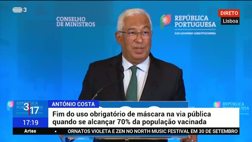 António Costa ainda apontou que a limitação da circulação na via pública nos concelhos de maior risco de incidência de covid-19, entre as 23h00 e as 5h00, vai deixar de ser aplicada a partir do próximo domingo, 1 de agosto.