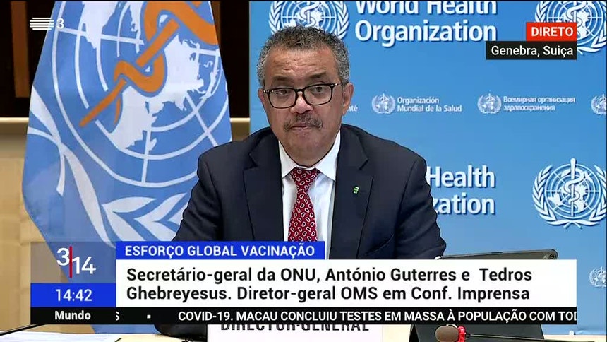 O anúncio foi feito hoje pelo diretor-geral da OMS, Tedros Ghebreyesus, em conjunto com o secretário-geral da ONU, António Guterres, em conferência de imprensa virtual, a partir de Genebra e Nova Iorque.