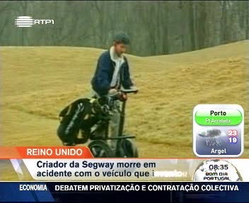 Morreu o dono da Segway. Tinha 62 anos. Terá caído num penhasco enquanto conduzia um dos famosos veículos. O acidente ocorreu na propriedade rural do multimilionário britânico, no norte de Inglaterra. O Segway surgiu há quase 10 anos, afirmando-se como o substituto das bicicletas.