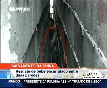 Na China, um grupo de socorristas salvou uma criança de dois anos, que ficou presa entre duas paredes. Na brincadeira,o rapaz achou que era o esconderijo ideal e acabou encurralado num espaço de quinze centímetros. Entre manobras e muita angústia dos pais a criança acabou por ser retirada sem ferimentos.