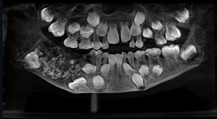A chefe da especialidade de Patologia Oral e Maxilofacial do hospital, Prathiba Ramani confirmou à CNN que quando foi realizada a radiografia os médicos depararam com uma “cavidade embutida no maxilar inferior cheio de dentes anormais”.