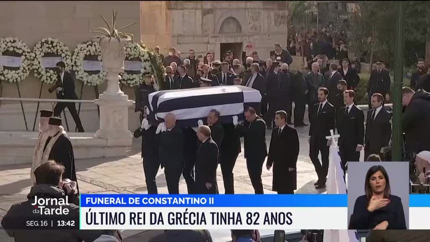 Centenas de pessoas participaram esta manhã, em Atenas, no funeral do último rei da Grécia. Entre os presentes estavam membros de várias famílias reais europeias. Constantino II, que era irmão da ex-rainha Sofia de Espanha, morreu na passada terça-feira, aos 82 anos.