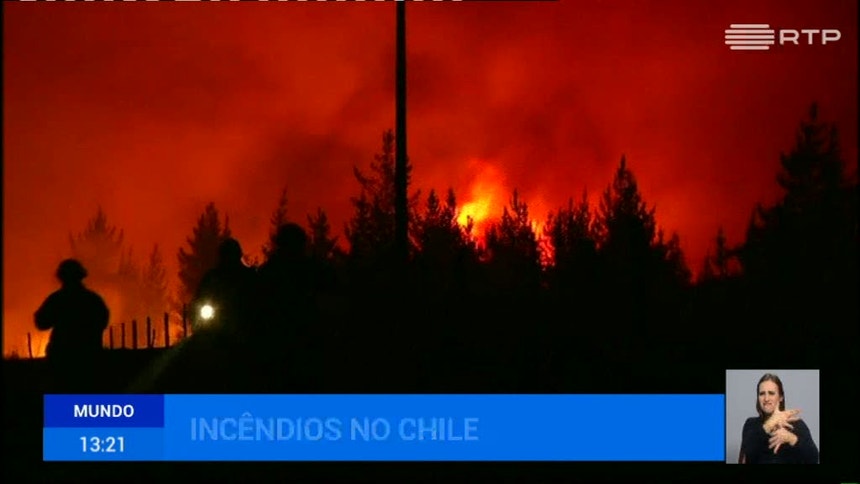Uma vaga de incêndios já consumiu cerca de 80 mil hectares de zona florestal e destruiu mais de 40 casas. As autoridades chilenas dão conta de 50 fogos ativos, muitos deles ainda por controlar.