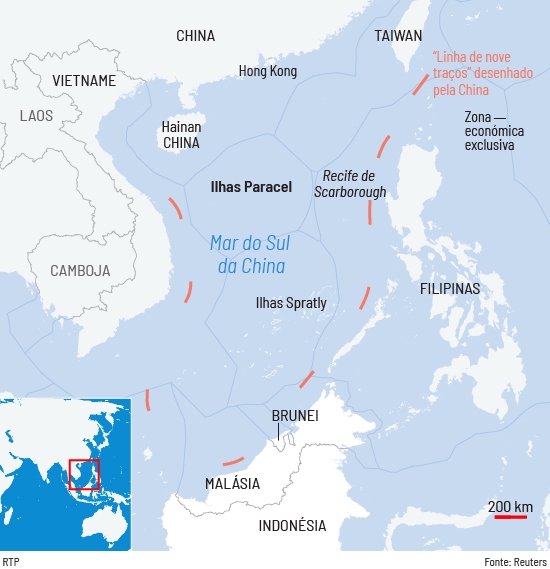 Pelas águas do Mar do Sul da China, parcialmente reivindicadas por Filipinas, Vietname, Malásia, Brunei e Taiwan, passa cerca de um terço do comércio internacional.