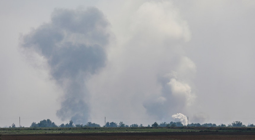 Várias pessoas têm partilhado vídeos de colunas de fumo e explosões num depósito russo de munições na localidade de Mayskoye, na Crimeia.