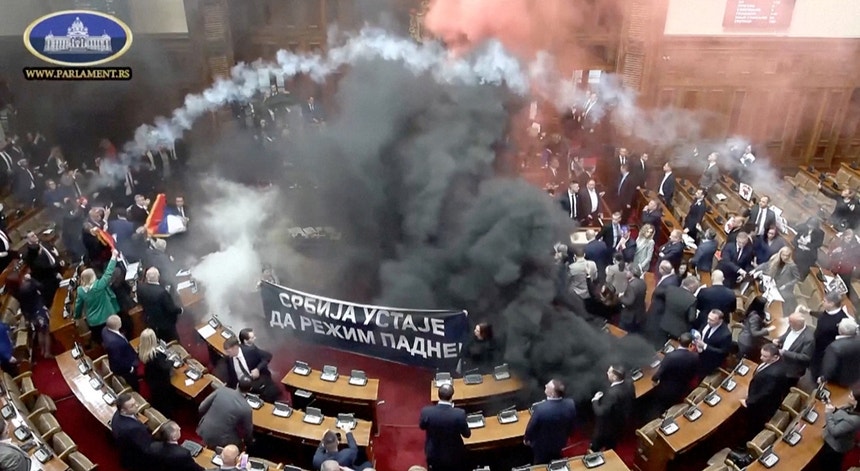 Pelo menos três deputados sérvios ficaram feridos no parlamento após confrontos entre partidos. No início da sessão, elementos da oposição lançaram granadas de fumo e gás lacrimogéneo. Uma das deputadas sofreu um enfarte e está em estado crítico.
