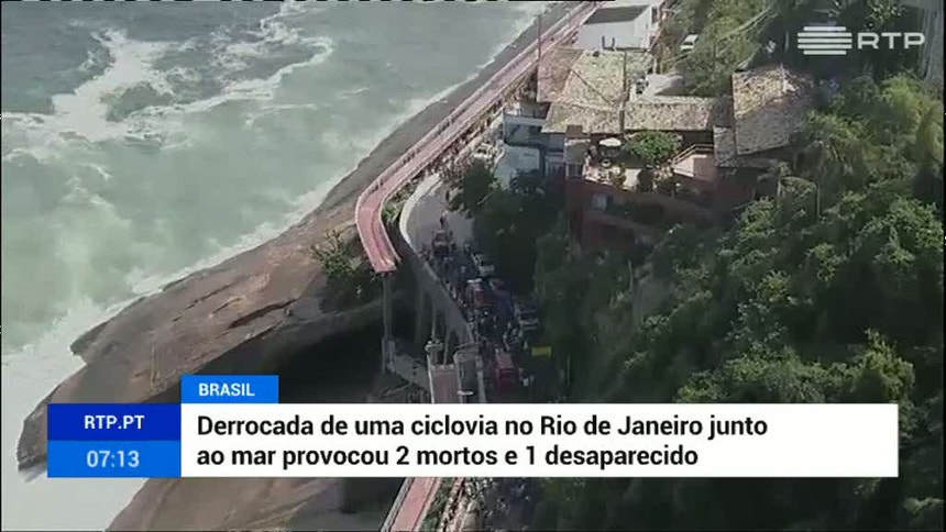 No Brasil, a derrocada de uma ciclovia, no Rio de Janeiro, matou duas pessoas. As duas vitimas mortais foram arrastadas para o mar. O embate de ondas fortes deverá estar na origem da derrocada.