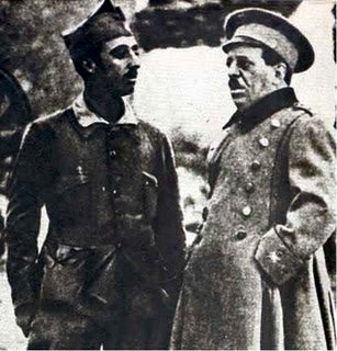ais combatendo primeiro em Cuba e depois em Marrocos. Ganhara prestígio militar, influência política e galões de general. Entre os seus subordinados contava-se Francisco Franco (à esq. na foto, com Sanjurjo durante a guerra de Marrocos - DR).