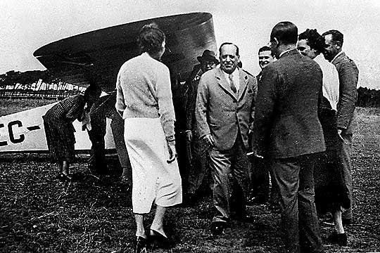 da - um hipódromo situado na Quinta da Marinha. Sanjurjo, que o esperava aí, embarcou (na foto, o momento do embarque - DR) com aquilo que alguns presentes consideravam uma bagagem demasiado pesada. Mas recusou obstinadamente separar-se dos seus uniformes de gala: julgava-os necessários a muito breve prazo, para as comemorações de uma vitória que considerava iminente.