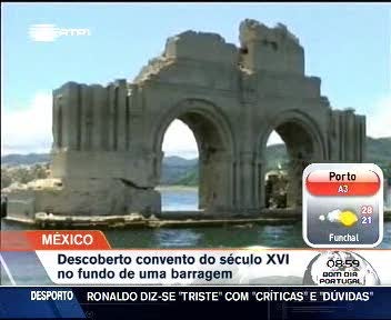 No México, a falta de água numa barragem trouxe para a luz do dia um convento do século XVI. O convento de Santiago esteve debaixo de água mais de 40 anos, altura em que a barragem foi construída. Agora a água na barragem atingiu níveis muito baixos e pôs a descoberto o convento.