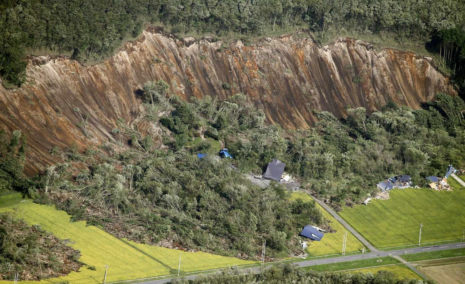 Imagens aéreas mostram os montes perto da localidade de Atsuma, no sul da ilha, literalmente cortados devido a enormes deslizamentos de terras, que arrastaram árvores e casas construídas nas encostas, com os bombeiros a remover destroços em busca de sobreviventes.