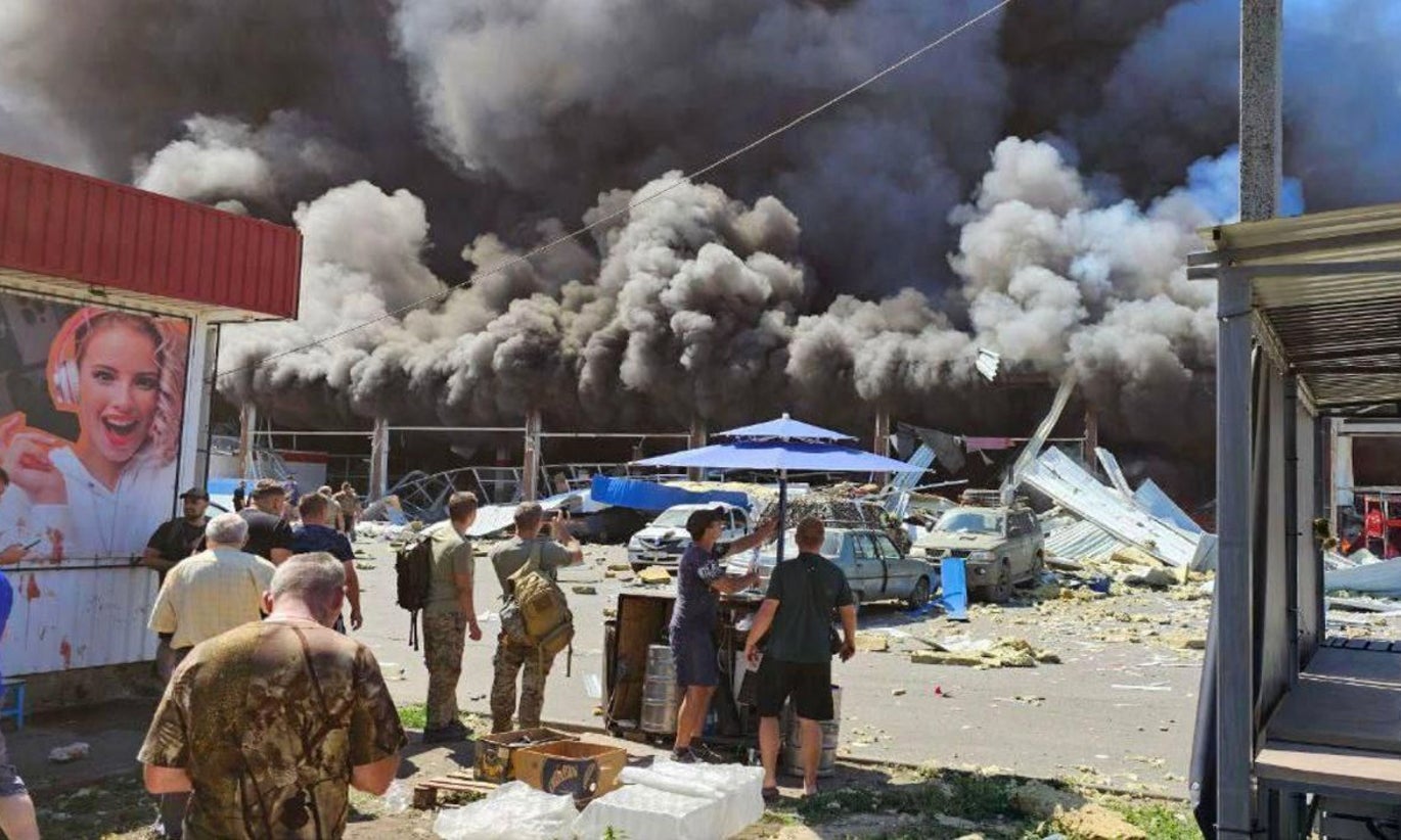 As forças russas bombardearam esta sexta-feira um mercado em Kostyantynivka, na região de Donetsk, no leste da Ucrânia. Muitas pessoas estavam a fazer as compras matinais quando o ataque ocorreu. Pelo menos dez civis morreram e outros 35 ficaram feridos.