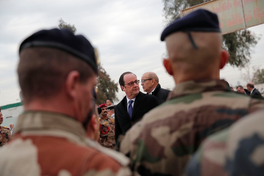Hollande disse aos soldados franceses que treinam as forças especiais iraquianas que o seu envolvimento no combate ao grupo extremista Estado Islâmico é essencial para evitar ataques terroristas em França.