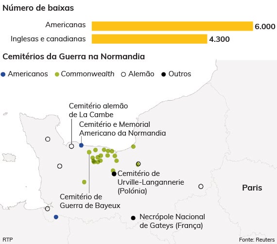 Os cemitérios de guerra na Normandia acolhem os túmulos dos soldados de diferentes nações que lutaram e morreram durante a Segunda Guerra Mundial.