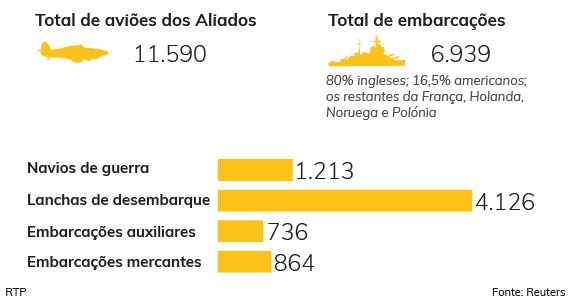 Quase 7 000 navios e lanchas de desembarque, dos quais 1 213 eram navios de guerra, foram utilizados na Operação Neptuno. Dois enormes portos artificiais foram rebocados através do Canal da Mancha após o ataque inicial às posições alemãs.