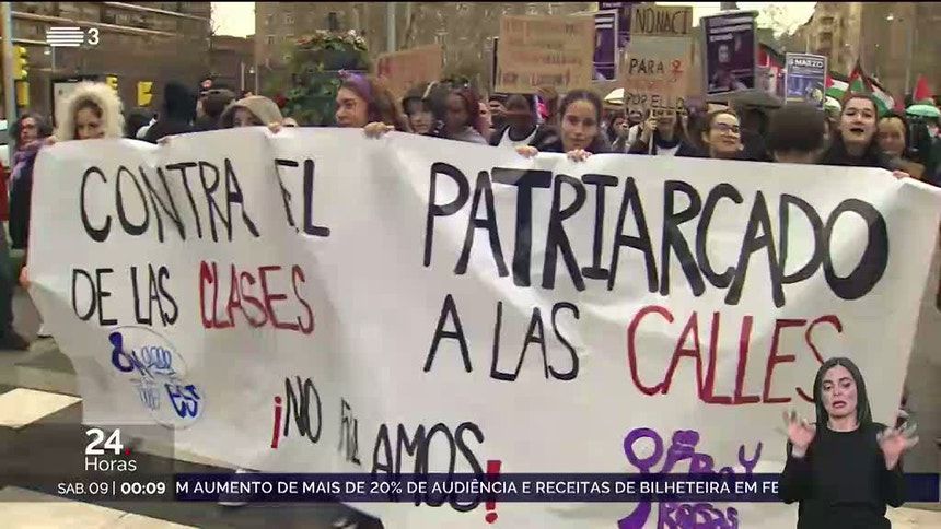 Mundo Dia da Mulher assinalado com manifestação em Lisboa e no mundo Milhares de mulheres marcharam pelas ruas de Lisboa e do mundo. RTP / VER MAIS Neste Dia Internacional da Mulher, os temas em destaque foram a desigualdade de género e a violência. PUB