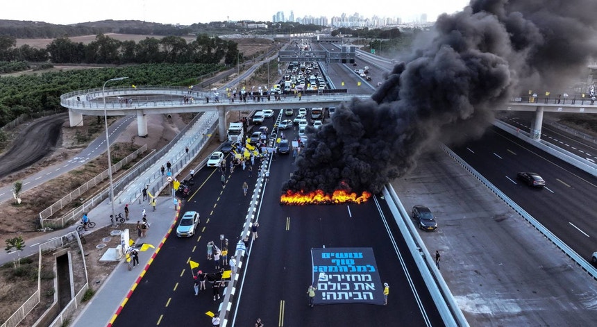 Esta terça-feira vai ser um "dia de ação intensiva" em Israel, com várias manifestações programadas em todo o país para exigir a libertação dos reféns e o fim da guerra em Gaza. Durante a manhã, vários grupos de manifestantes, compostos maioritariamente por familiares dos reféns, bloquearam algumas das principais estradas de Israel.