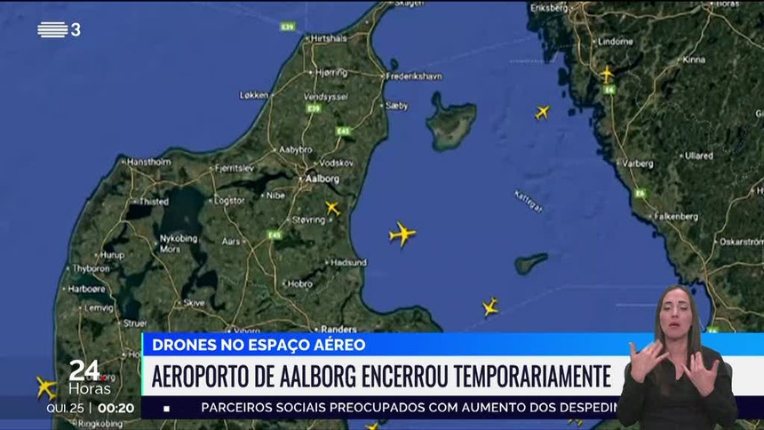 Mais um aeroporto na Dinamarca voltou a encerrar temporariamente esta quarta-feira devido à presença de drones no espaço aéreo. O aeroporto da cidade de Aalborg foi afetado com três voos a serem desviados para outros aeroportos.