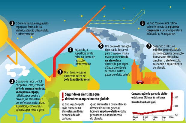 Com o aumento e concentração de gases na atmosfera, segundo os cientistas, a temperatura global poderá aumentar 2,4 graus Celsius.