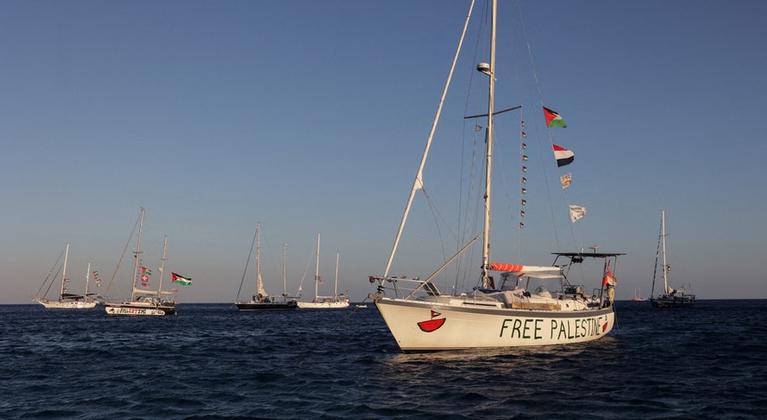 Pelo menos 13 embarcações da flotilha foram intercetadas pela Marinha do Estado hebraico. Uma delas terá sido mesmo abalroada em águas internacionais, de acordo com a Flotilha Global Sumud.