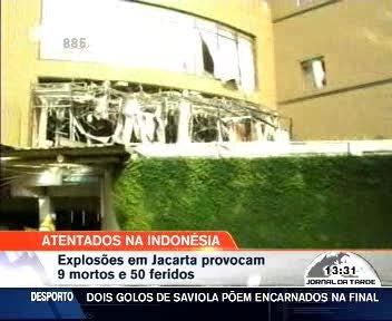 As explosões, quase simultâneas, ocorreram nos hotéis Ritz Carlton e Marriott, situados numa zona de negócios da capital indonésia e muito frequentada, principalmente por estrangeiros, e foram provocadas por bombas de forte detonação transportadas por dois terroristas suicidas.