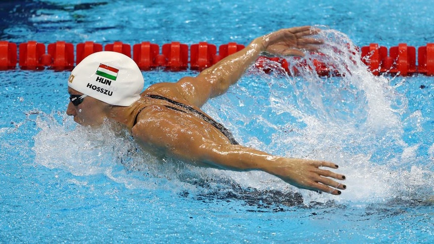A campeoníssima húngara juntou dois ouros, nos 200 mariposa e nos 100 estilos, ao conquistado na quarta-feira, nos 400 estilos – nesse dia, a "Dama de Ferro" celebrou a 50.ª medalha de piscina curta, a 90.ª medalha internacional, entre Mundiais, Europeus e Jogos Olímpicos, e o 60.º ouro da carreira neste trio de provas.
