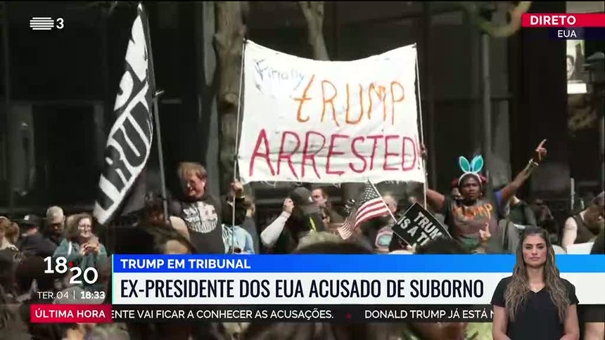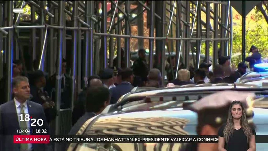 O ex-presidente dos EUA chegou ao tribunal pelas 13h30 locais, um pouco antes da hora prevista para ser presente ao juiz, ser fotografado, lhe tirarem as impressões digitais e ser formalmente acusado no caso Stormy Daniels. Donald Trump deverá alegar inocência.