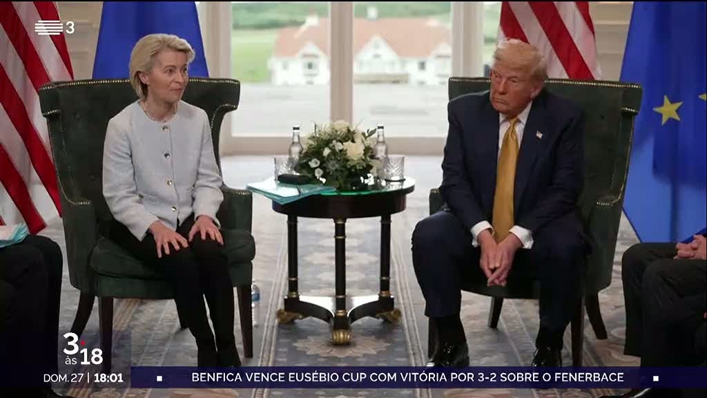 O presidente dos Estados Unidos e a presidente da Comissão Europeia concordam haver uma probabilidade de 50-50 de chegarem a uma acordo sobre as taxas alfandegárias entre os dois blocos.
