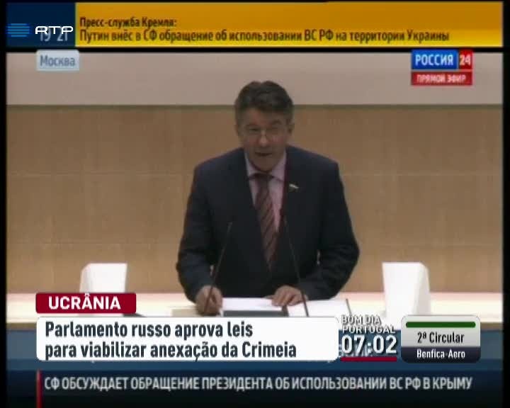 A câmara baixa do Parlamento de Moscovo anunciou que vai aprovar legislação para permitir à Crimeia juntar-se à Rússia. Em comunicado, os deputados russos indicam que o resultado do referendo na região autónoma ucraniana foi claro. Dizem que os habitantes da Crimeia apenas veem o futuro integrados na Rússia.