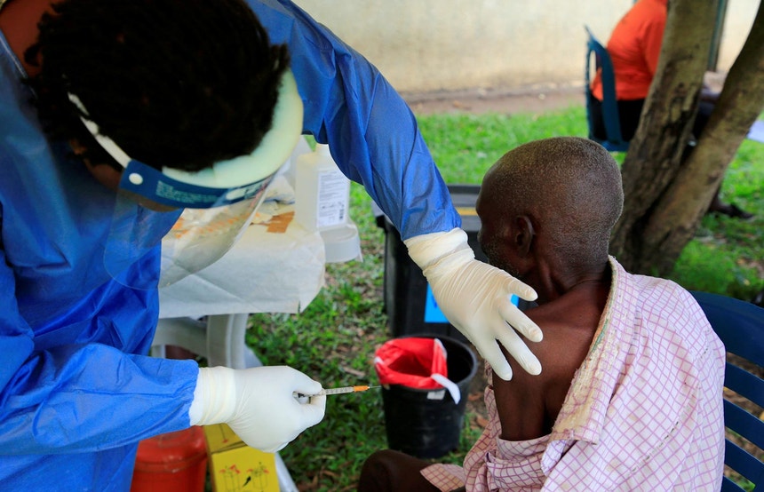 Um funcionário dos serviços sanitários da RD Congo administra a vacina contra o Ébola a uma criança no Centro de Saúde de Himbi, em Goma Olivia Acland - Reuters