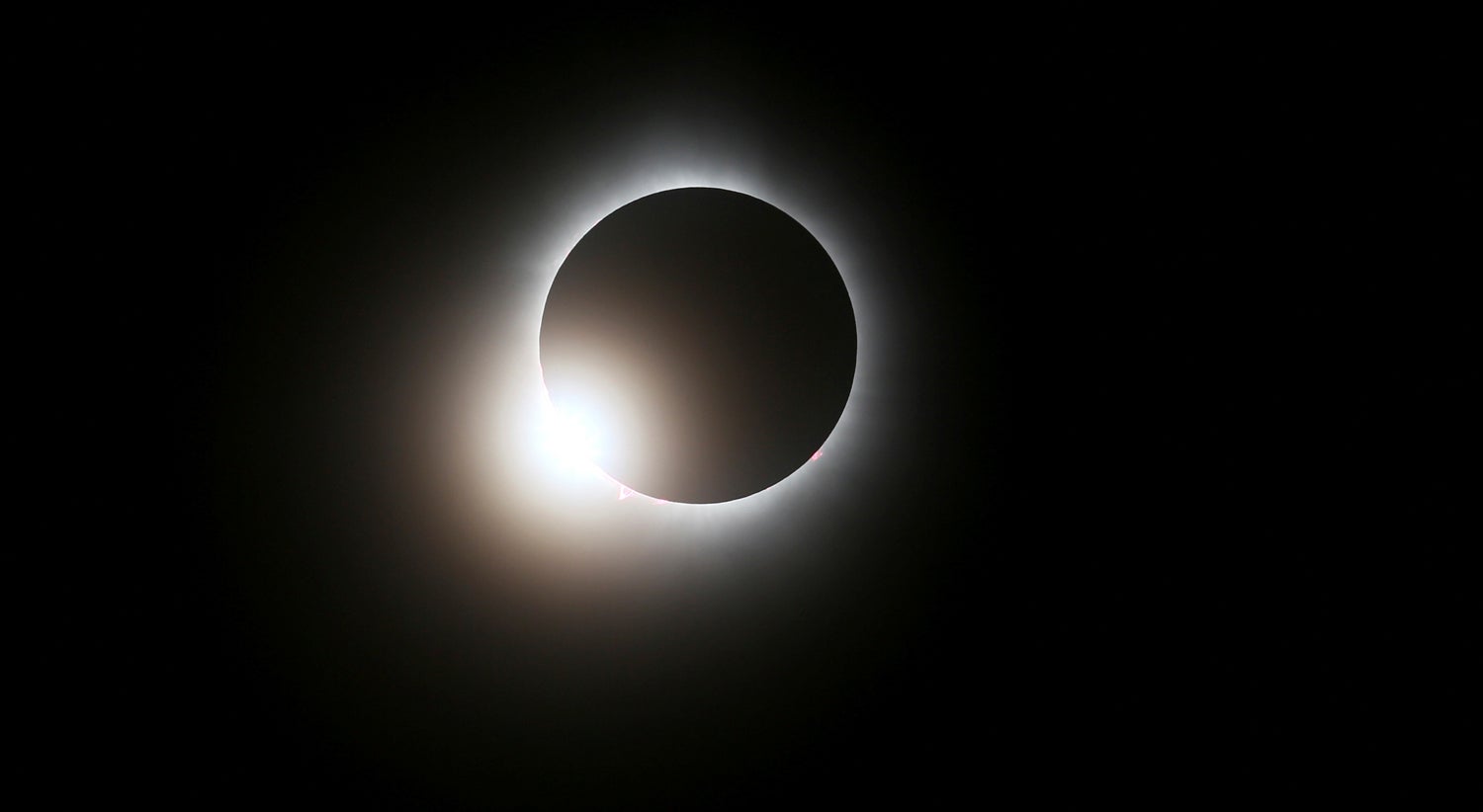 Durante o eclipse solar total, as pessoas na Terra puderam ver a atmosfera do Sol, ou a coroa formando um halo durante o tempo que a Lua bloqueava o resto da luz do Sol.