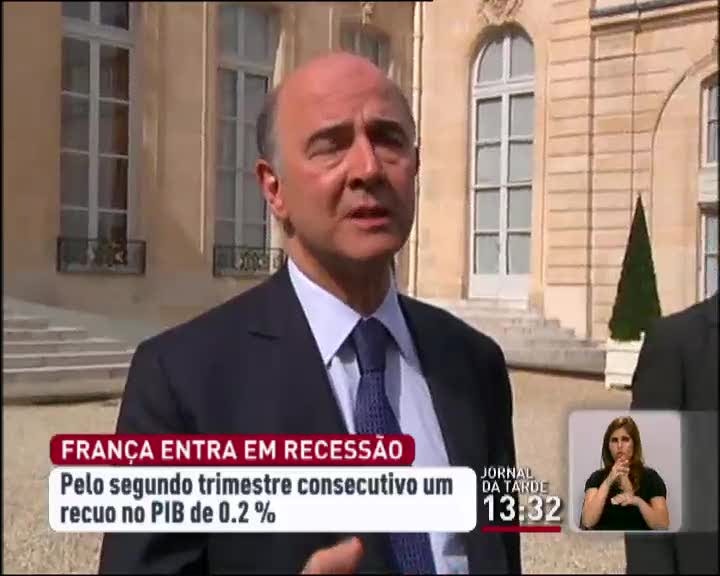 A França entrou em recessão. O PIB sofreu um novo recuo de 0,2% no 1º trimestre deste ano. A queda do produto foi idêntica à dos últimos três meses de 2012. O ministro francês das Finanças admitiu que já esperava este resultado, que, em parte, se deve ao clima recessivo na zona euro.
