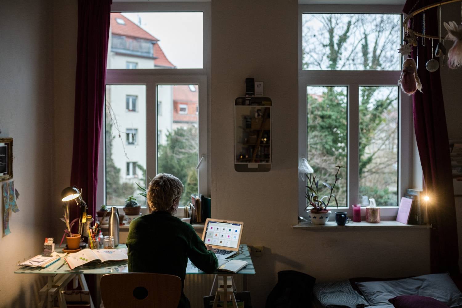 Estudante frequenta a escola a partir de casa em Halle/Saale, na Alemanha, a 5 de janeiro de 2021 | Jens Schlueter/ AFP