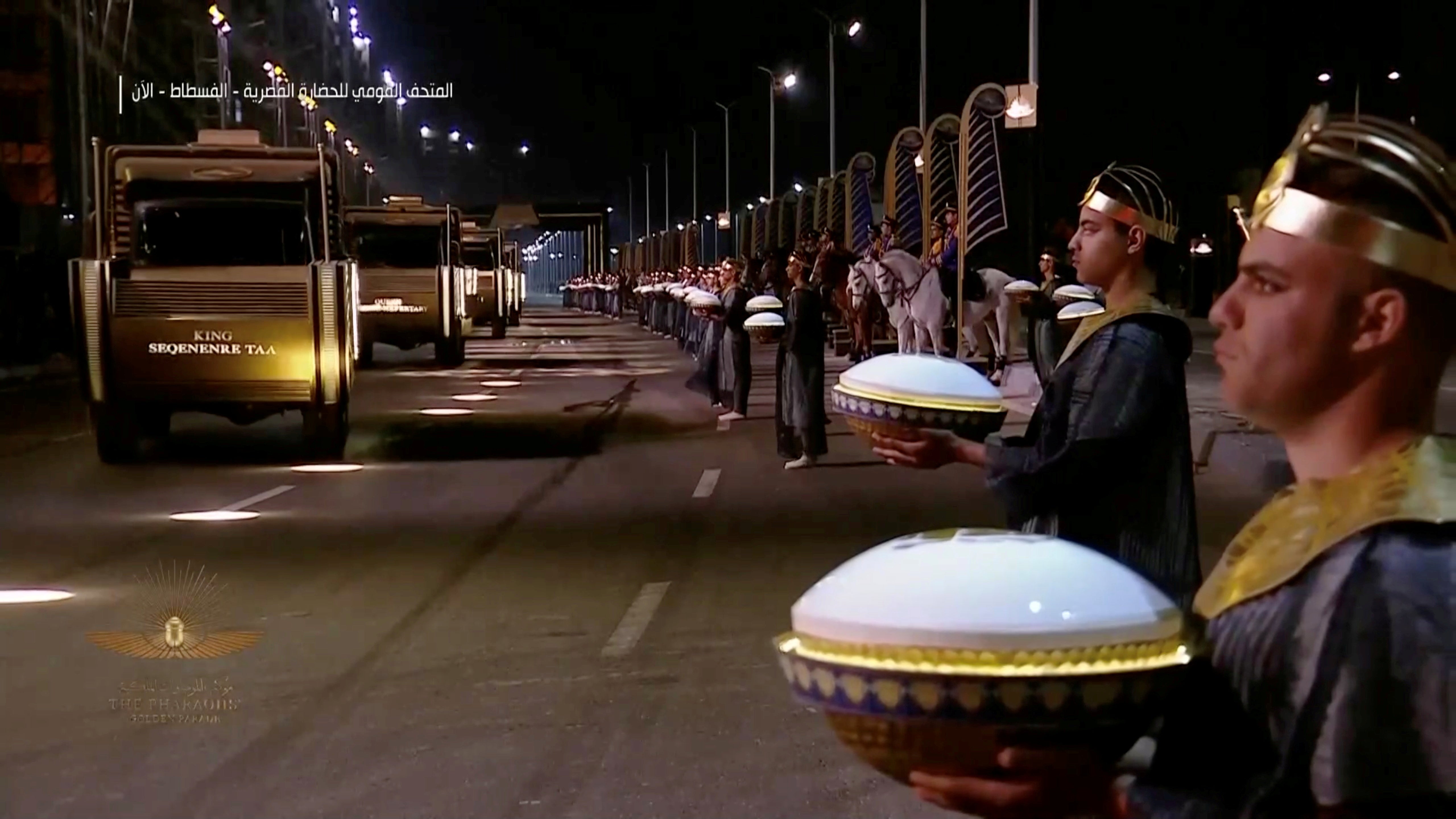 Entretanto, foram transportados os restos mortais mumificados de 18 antigos faraós e quatro rainhas do antigo Museu Egípcio para as instalações do Museu Nacional da Civilizaçao Egípcia. Cairo engalanou-se para ver o "Desfile de Ouro dos Faraós".