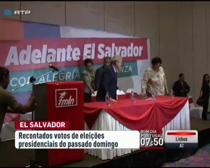 Em El Salvador aguarda-se a recontagem dos votos das eleições presidenciais de domingo. O candidato da esquerda tem uma vantagem de apenas duas décimas sobre o candidato rival. A direita alega que houve fraude eleitoral. Mas o tribunal eleitoral recusa as acusações e diz que a recontagem não deverá alterar o resultado do escrutínio.