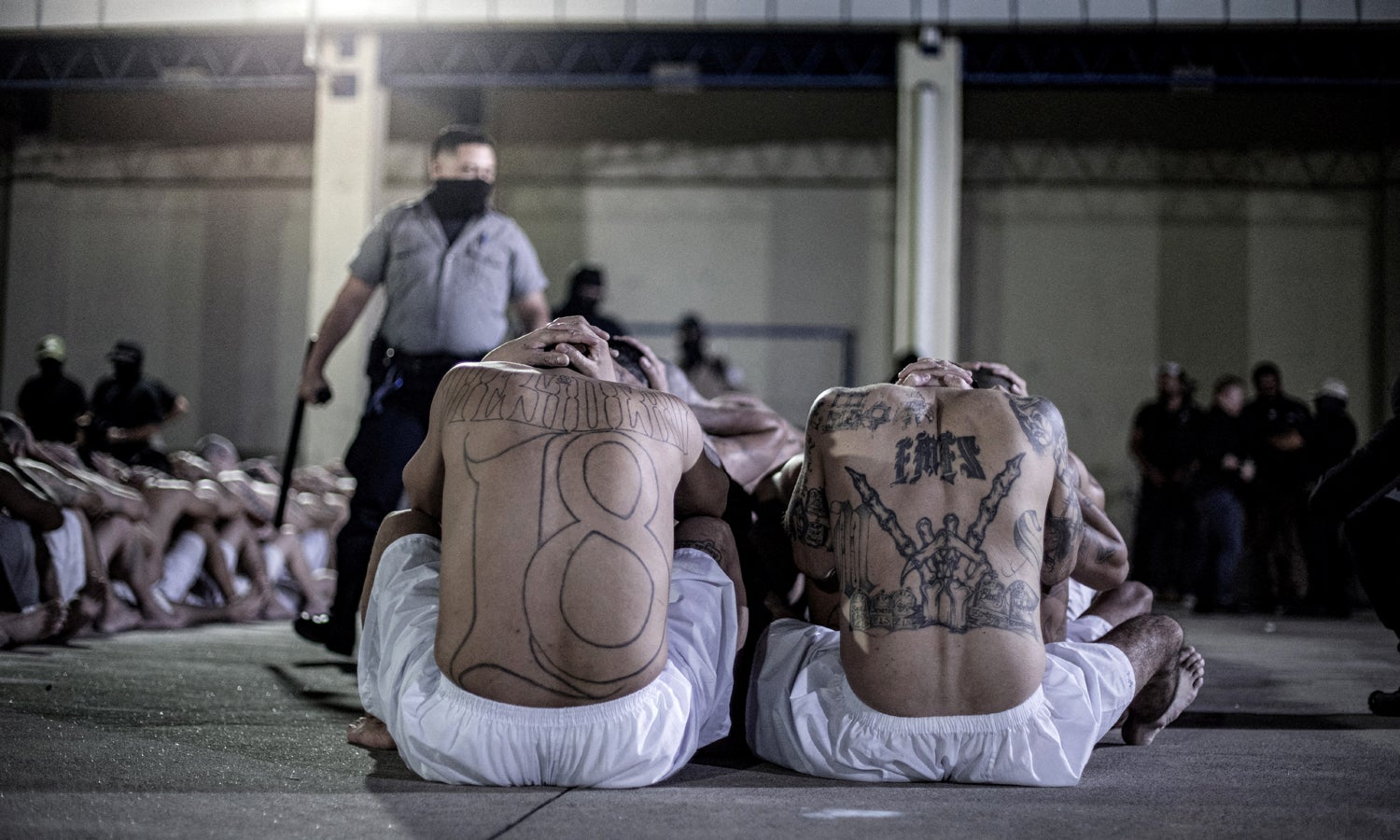 Muitos exibem tatuagens de algarismos, simbolizando a afiliação a gangues | Secretaria de Imprensa da Presidência via Reuters