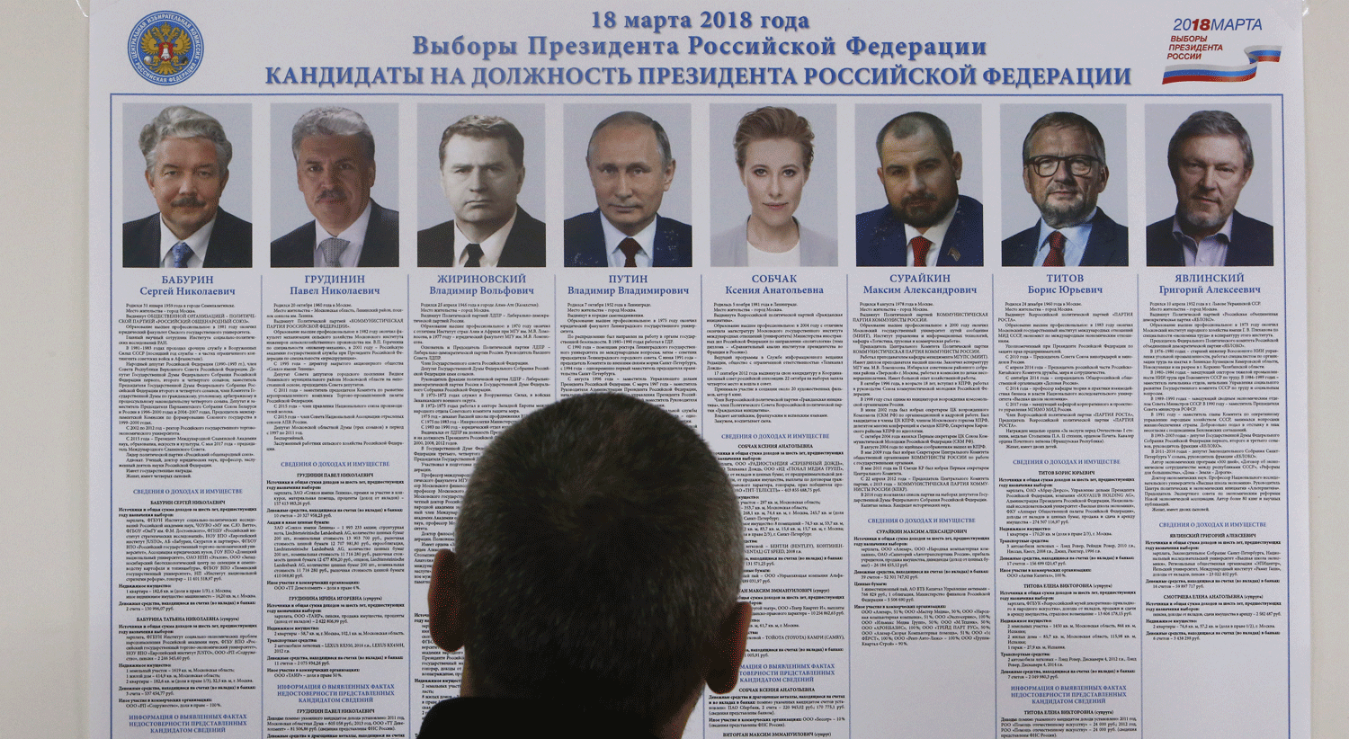 A lista de candidatos fica completa com Grigory Yavlinsky, um liberal que ajudou a liberalizar a economia soviética na era Gorbachev; Boris Titov, um empresário novato nas lides políticas; Sergei Baburin, antigo candidato do partido comunista e grande apoiante da política externa de Putin; e Maxim Suraikin, que classifica todos os outros candidatos como “burgueses” e se identifica como leninista-estalinista.
