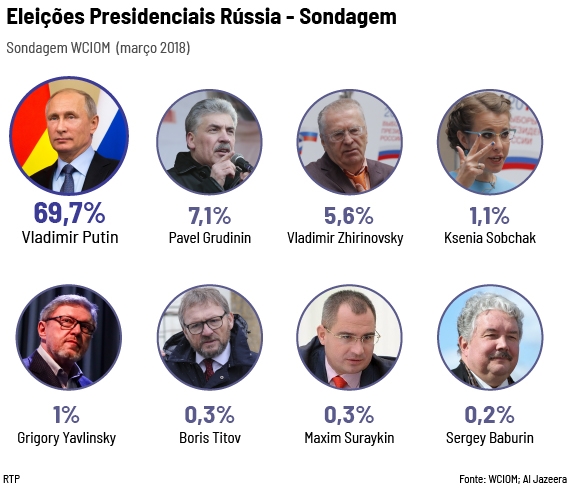 Também a investigadora Raquel Freire acredita que este poderá ser o derradeiro mandato de Vladimir Putin que, em 2024, data da próxima eleição, terá completado 71 anos. “Começa a haver algum cansaço, alguma vontade de mudança interna. Putin não é alheio a isto. Nestas eleições ele não é candidato pelo seu partido, o Rússia Unida, é candidato independente. Isto é interessante porque de alguma forma mostra que se quer afastar um pouco de algumas questões em termos de política interna que não têm corrido tão bem. Mas mais do que isso, mostra uma vontade de ser conhecido e de ser reconhecido como um líder histórico. Uma figura histórica que devolveu à Rússia o estatuto de grande potência do sistema internacional”, destaca em entrevista à RTP.