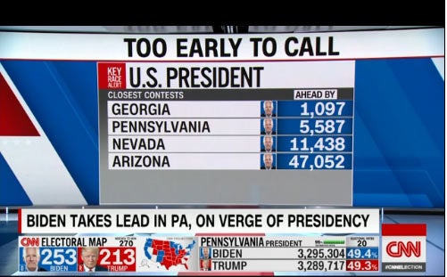 10h29 - CNN diz que Biden devem também em breve liderar na Pennsylvania