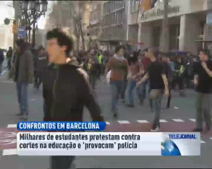 Em Barcelona uma manifestação de milhares de estudantes acabou em confrontos com a polícia