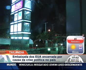 Os Estados Unidos encerraram a embaixada em Banguecoque na Tailândia. Washington diz que está preocupada com a situação no país. A decisão foi tomada depois de o Governo tailandês ter ordenado a abertura do centro da cidade, ocupada há dois meses por dez mil opositores ao Executivo. Um general tailandês simpatizante dos camisas-vermelhas foi entretanto morto com um tiro na cabeça enquanto conversava com jornalistas.