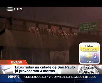 Uma enxurrada na cidade brasileira de São Paulo matou 3 pessoas. Ontem, as chuvas intensas deixaram submersas várias zonas da maior cidade do Brasil.