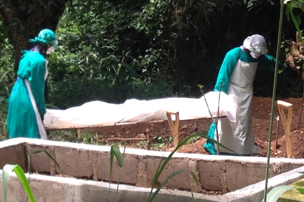 As autoridades tentam evitar que os familiares das vitimas do Ébola enterrem os seus mortos da forma tradicional que inclui habitualmente a lavagem do corpo. Os mortos devem ser em vez disso enterrados por pessoal de saúde com fatos protetores.